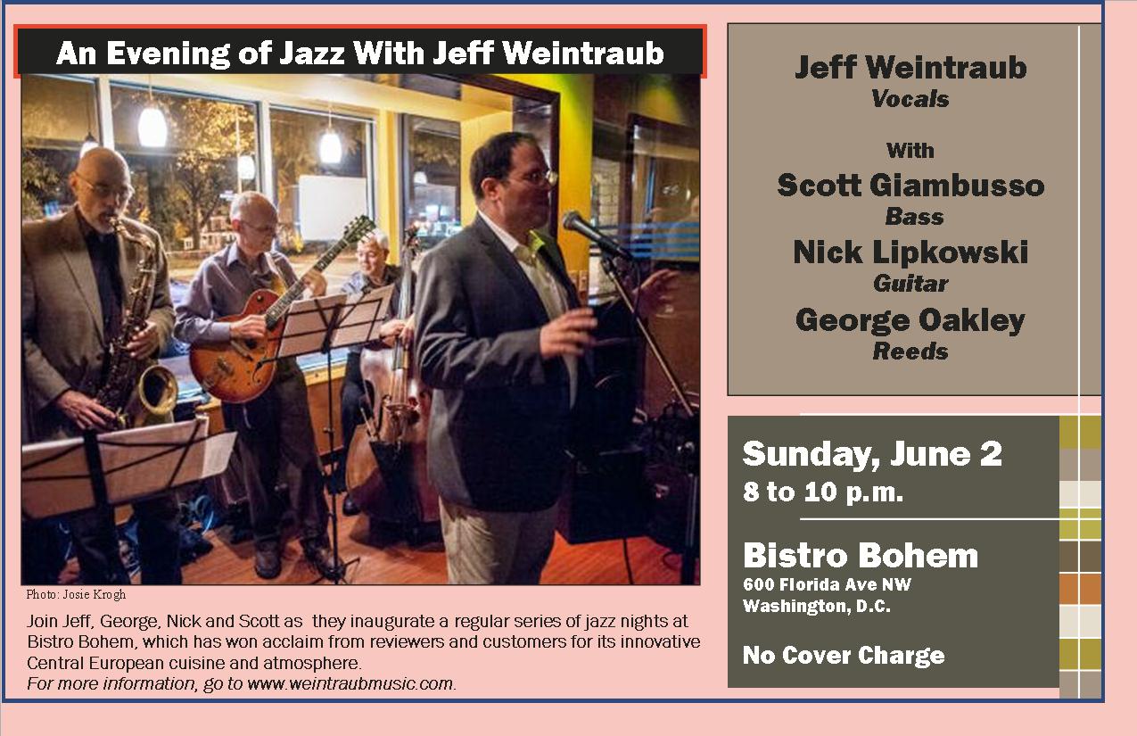 If you missed us on June 2 when we inaugurated a new weekly jazz series at Bistro Bohem, well, it was a good time. Lots of people speaking many different languages, great food and drink. We’ll try to recreate that for you on Sunday, July 7, and Sunday, August 4, 8 p.m. to 10 p.m. when we’re back at the Kafe.